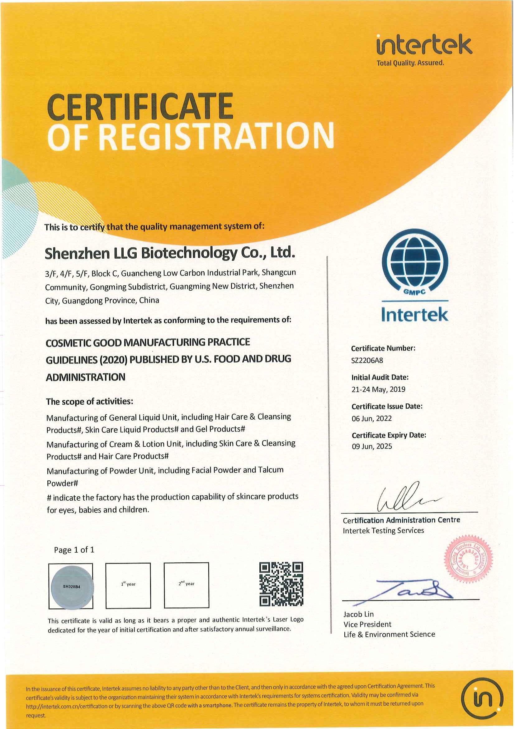 2016年積極響應國家“二證合一”新政策,率先通過新標準取得《化妝品生產許可證》。